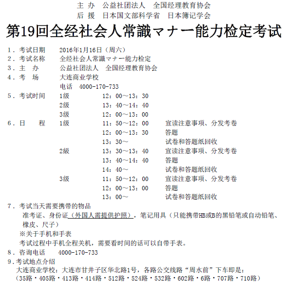 第19回全经社会人常識マナー能力检定考试准考证领取通知