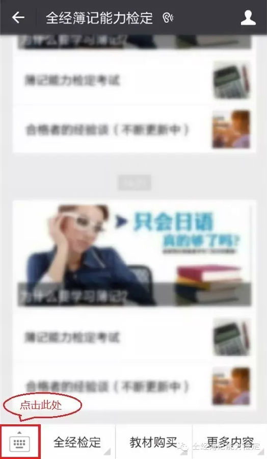 ①在全经官方微信公众号上点击左下角功能键切换到对话框模式;